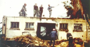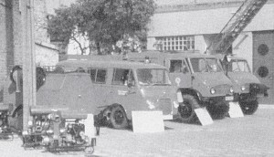mußten die Fahrzeuge (TSF sowie zwei Unimog des Bundes, die im Rahmen des Katastrophenschutzes in Rottendorf stationiert sind) und Geräte in räumlich beengten Verhältnissen in den Nebengebäuden des jetzigen Feuerwehrgerätehauses