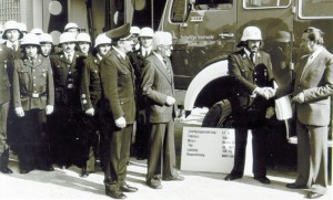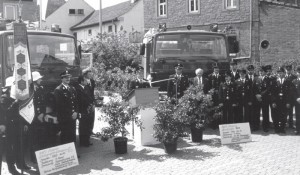 Die Schlüssel für das erste Großfahrzeug, ein Löschgruppenfahrzeug LF16 werden am 25. September durch Bürgermeister Elmar Ditzel an Kommandant Albert Schmitt übergeben. Kosten: