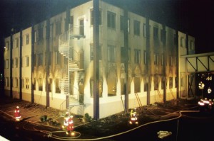 Großbrand bei der Firma s.Oliver im Gewerbegebiet. Durch den Einsatz mehrerer Wehren kann ein Übergreifen des Feuers auf die Stockwerke verhindert werden.